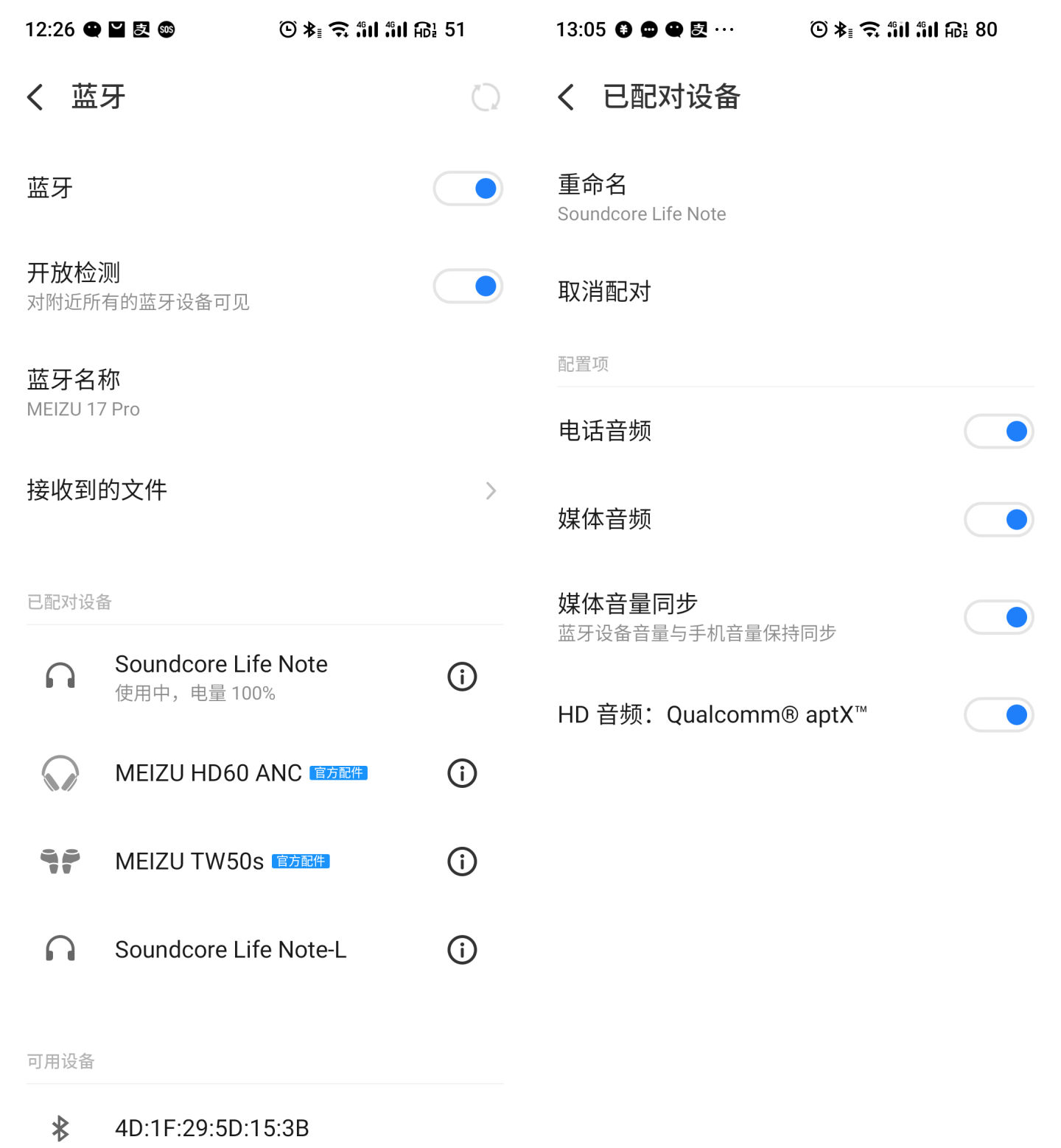 Life Note采用高通aptX编解码器。提供更好音质,让音乐更沉浸;无论人声还是乐器都比较兼容。