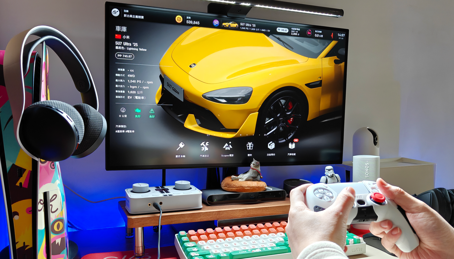 接下来,便可以根据不同的游戏,针对性调整音效,从而大幅提升沉浸感。在《GT赛车7》中,引擎的咆哮、轮胎碾过路肩的摩擦、换挡时铿锵的金属声,都被清晰地分离出来,层次分明,营造出十足的临场氛围,让我们能更投入地享受游戏过程。