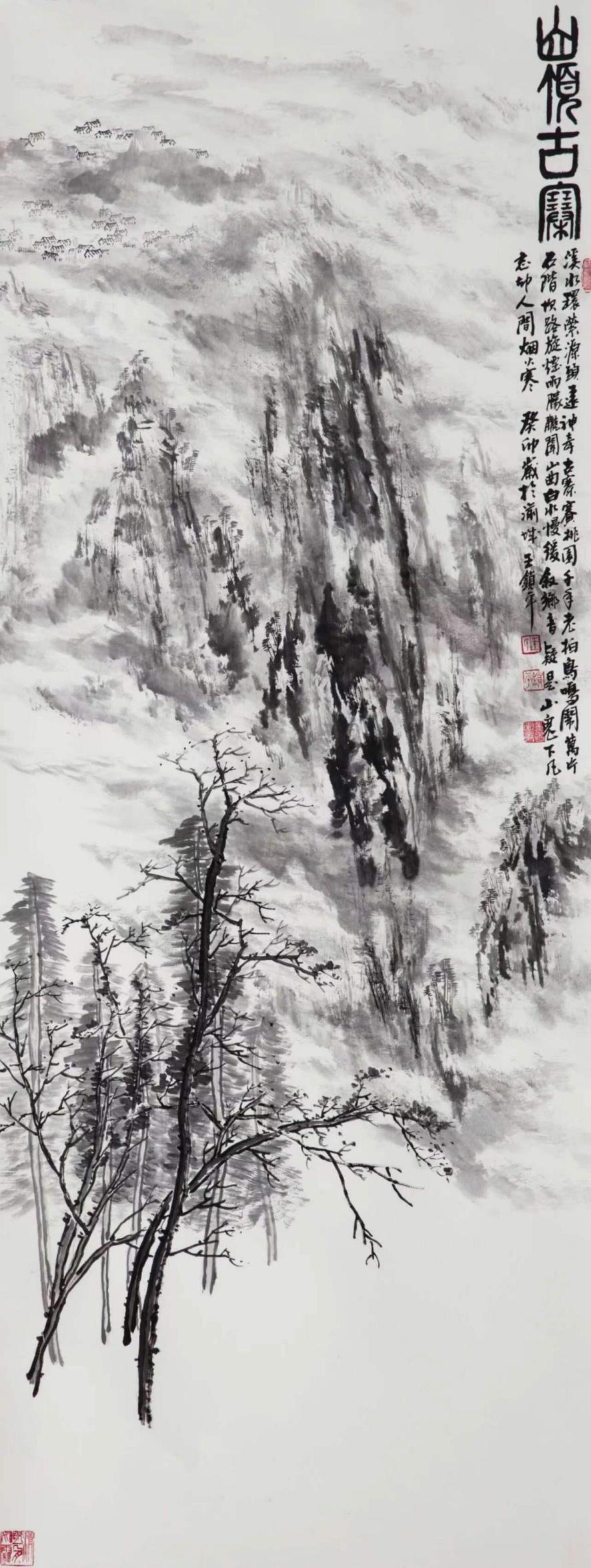 王锁平的艺术启蒙,深植于中国传统“诗、书、画 ”一体的文人画体系。他早年对古代经典的临摹与研习,并非止于技法,而是 对顾恺之“传神写照 ”、谢赫“气韵生动 ”,以及宋元文人画“写意 ”精神的深刻体悟。这种对传统的沉浸,使他获得了纯正的水墨语言 与深厚的文化底蕴。然而难能可贵的是,他并未被传统所束缚。在 全球化浪潮初兴的八九十年代,王锁平敏锐地意识到,纯粹的摹古 无法回应时代的叩问。于是他的艺术道路从一开始就注定是一条“师 古而不泥古 ”的探索之路——在敬畏传统的同时,时刻准备着为其注入新的艺术生命。