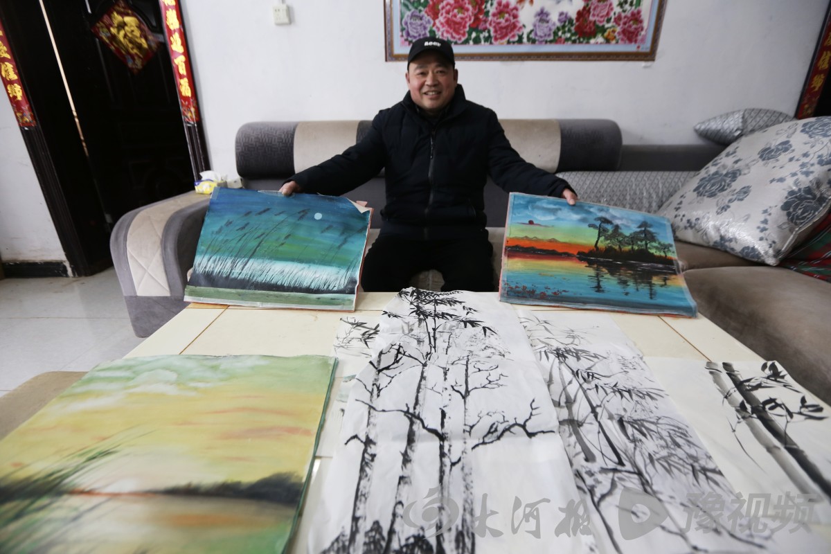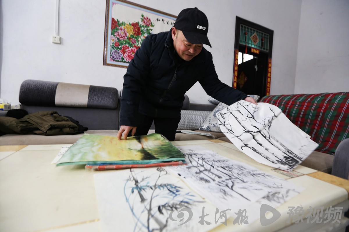 在那个紧邻沙河的村子里,李安亮伴随着蛋糕爆红了。但鲜为人知的是,李师傅不仅蛋糕做得好,还是一位多才多艺的农民。大河报·豫视频记者前去采访时,他还专门展示了自己的绘画作品。