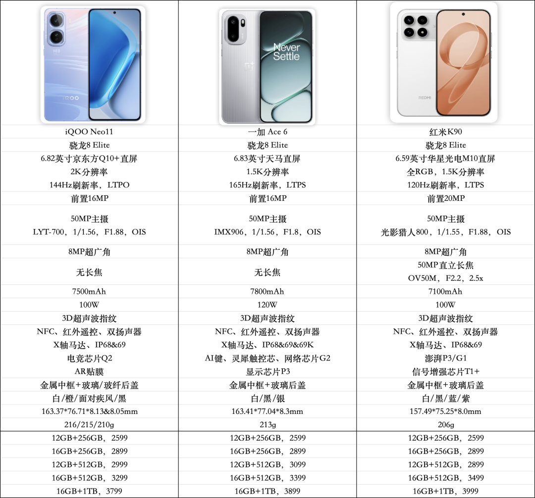 反观一加Ace 6和iQOO Neo 11,在面对红米K80至尊版时,整体配置缺乏明显优势,价格却更高,导致部分消费者反而转向性价比更突出的老款机型。