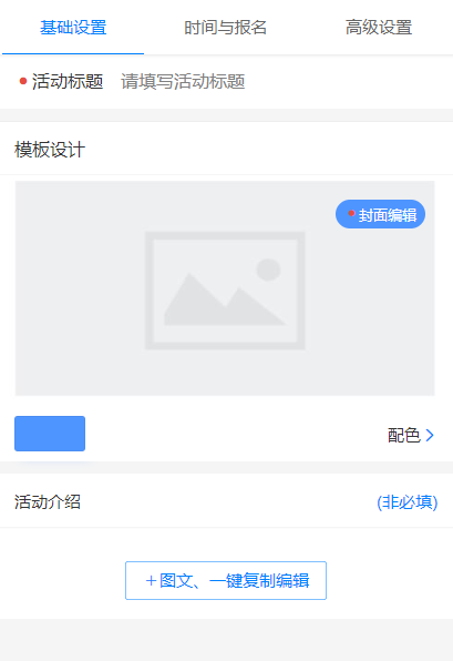 然后发布活动,手动添加选项(支持图文视频混排)