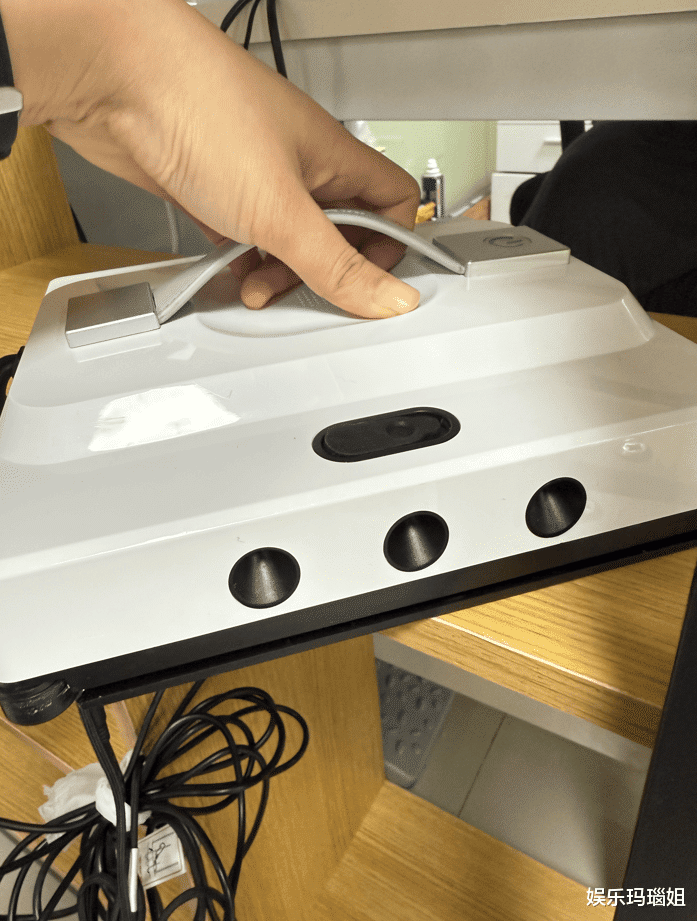 续航和喷水容量也很给力。双50ML大水箱一次加满就能擦完整屋落地窗,不像以前小水箱用一会儿就得加水。加上智能路径规划和边缘障碍识别,能自动绕开窗把手和窗锁,不漏任何角落,整个过程我只需坐在沙发上看着它工作。机身采用的插电方式,内置了一个600mah大电池,大面积清洁的时候也不用担心会突然断电!