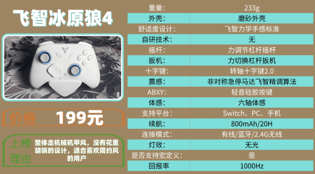 ◉手柄外形借鉴Xbox,但握持做了弧度优化,整体重量和手感都比较平衡。它最大的亮点是摇杆:2000级分辨率、多次采样校准、自动调整归中、零死区,加上可替换高度的摇杆帽,精准度和微操体验都非常亮眼。按键给到四个可自定义键(大背键+肩键),能映射技能、连发、宏操作,对射击、动作都很友好。扳机是可切换行程设计,长、短行程都能适配对应玩法,反馈干脆。再加上2.4G低延迟音频和3.5mm耳麦支持,在听声辨位和竞技反馈上的反应是比较及时的。