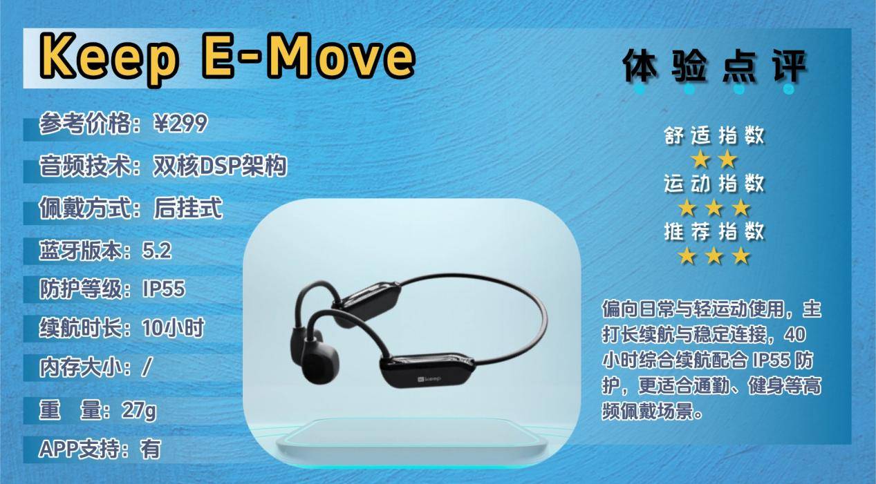 Keep E-Move是Keep推出的首款骨传导耳机,定位很明确,面向日常跑步和Keep体系内运动人群,强调轻量化、佩戴友好和与自家运动生态的结合,整体更偏大众运动市场。