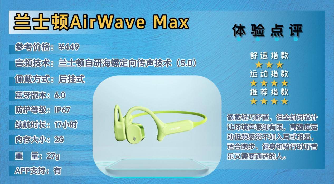 兰士顿AirWave Max定位为偏运动与通勤使用的开放式耳机,主打稳定连接、防护能力和通话清晰度,整体更偏功能完整型,而非轻量化或音质取向产品。