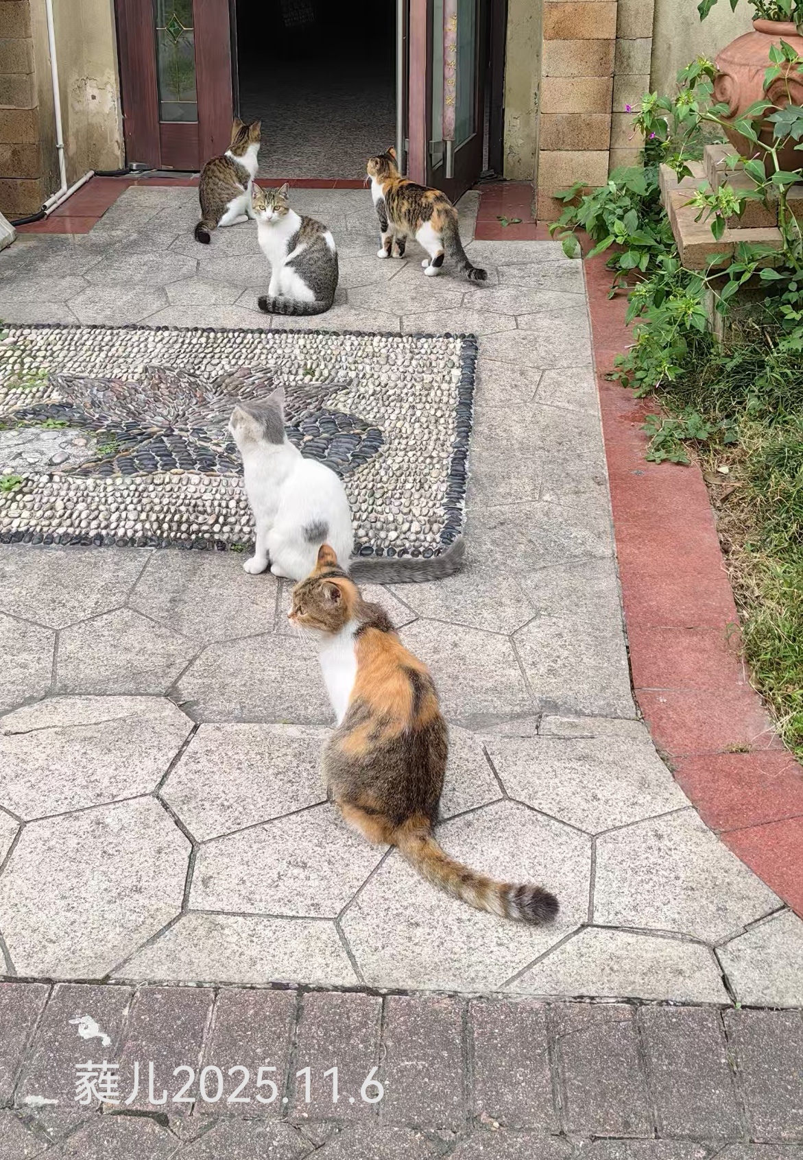 没想到不仅没有改变,反而越来越多了。看来猫咪互相打过招呼了,大家都知道这里有吃的。