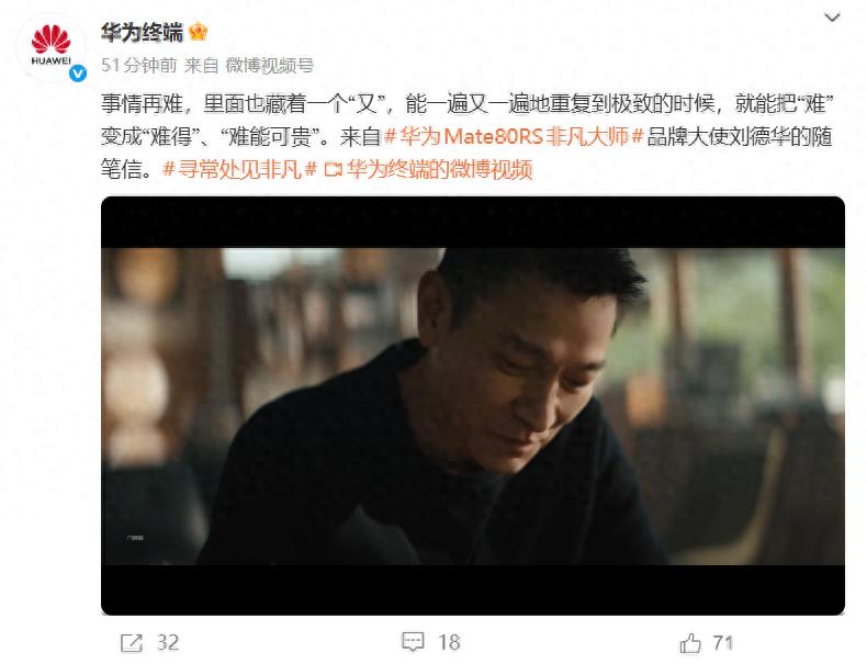 11月25日,华为官方发布非凡大师品牌大师刘德华最新短片《刘德华的一封随笔「信」》。刚刚完成72场个人演唱会的他,在镜头前以近乎自省的状态,分享了在过去一年中“反复练习同一件事”所带来的深刻体悟。他坦言:“如果没有天赋,就一直重复”,直至将原本的“困难”淬炼为“难得”与“难能可贵”。这段质朴而真诚的独白,精准道出了华为Mate 80 RS 非凡大师所承载的精神内核——“寻常处,见非凡”。