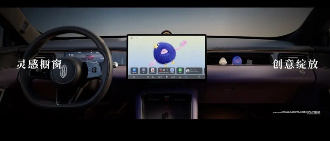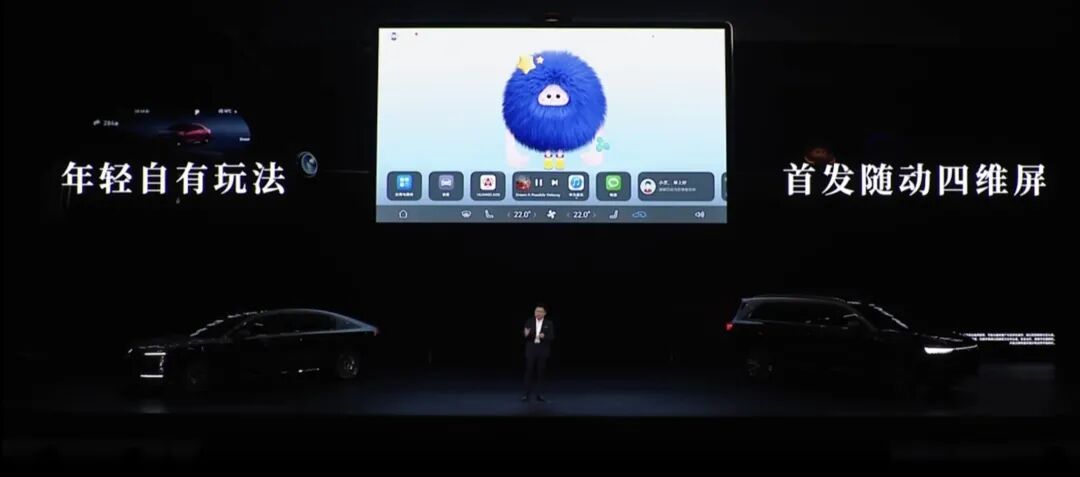 这次发布会还曝光了其内饰,还搭载了随动四维屏,可自动旋转以及具备迎宾功能,根据不同位置发出的指令,屏幕可转向应答,人车交互更有针对性。