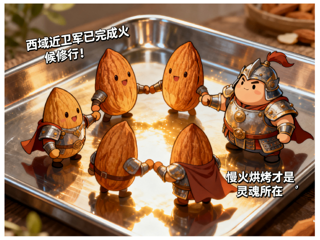 不锈钢烤盘反射着金光,巴旦木们互相碰撞致意:“西域近卫军已完成火候修行!”几个特别圆润的将领,正用盔甲折射虹光:「慢火烘烤才是灵魂所在」