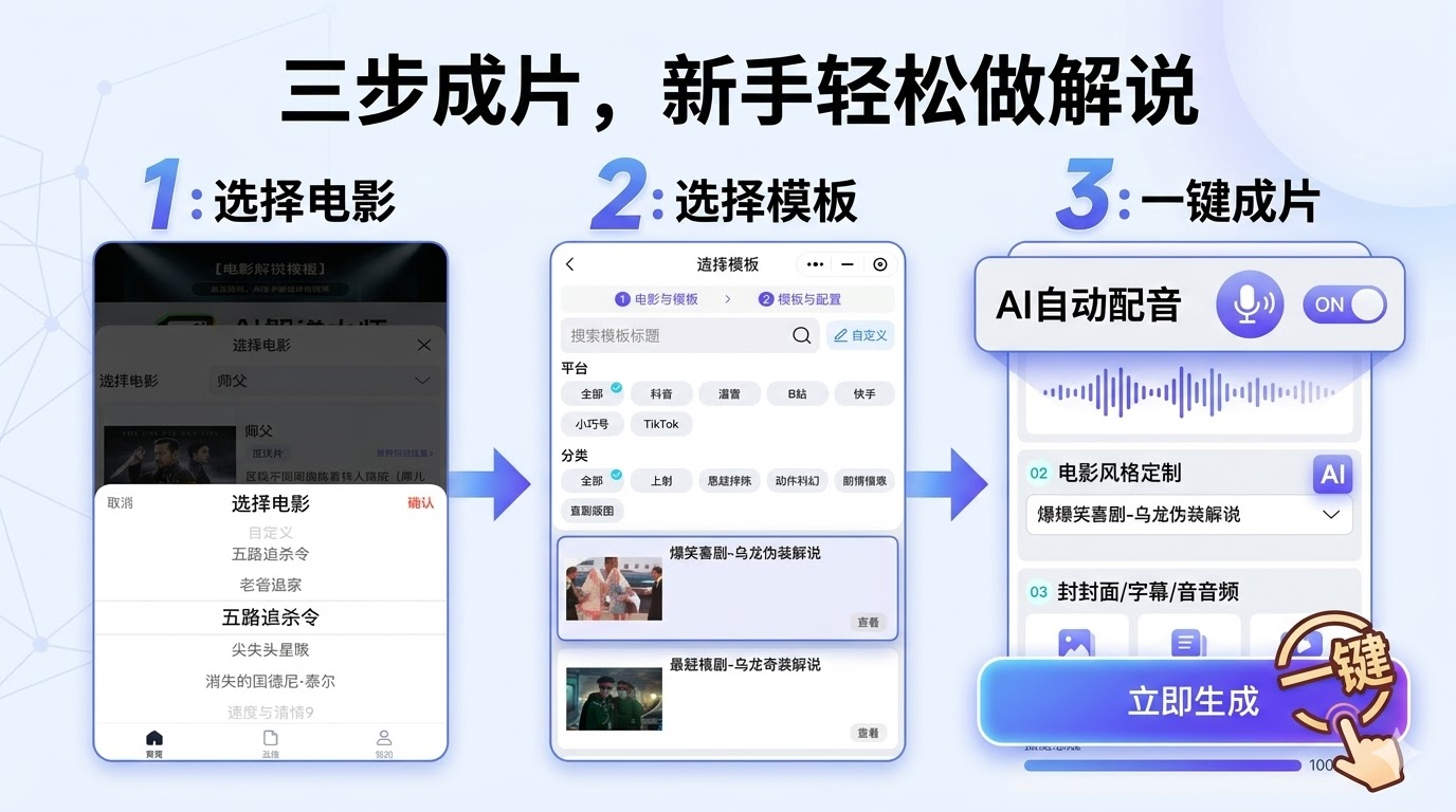 方案B:一站式工具(推荐AI解说大师旗下“电影解说AI智能体”)