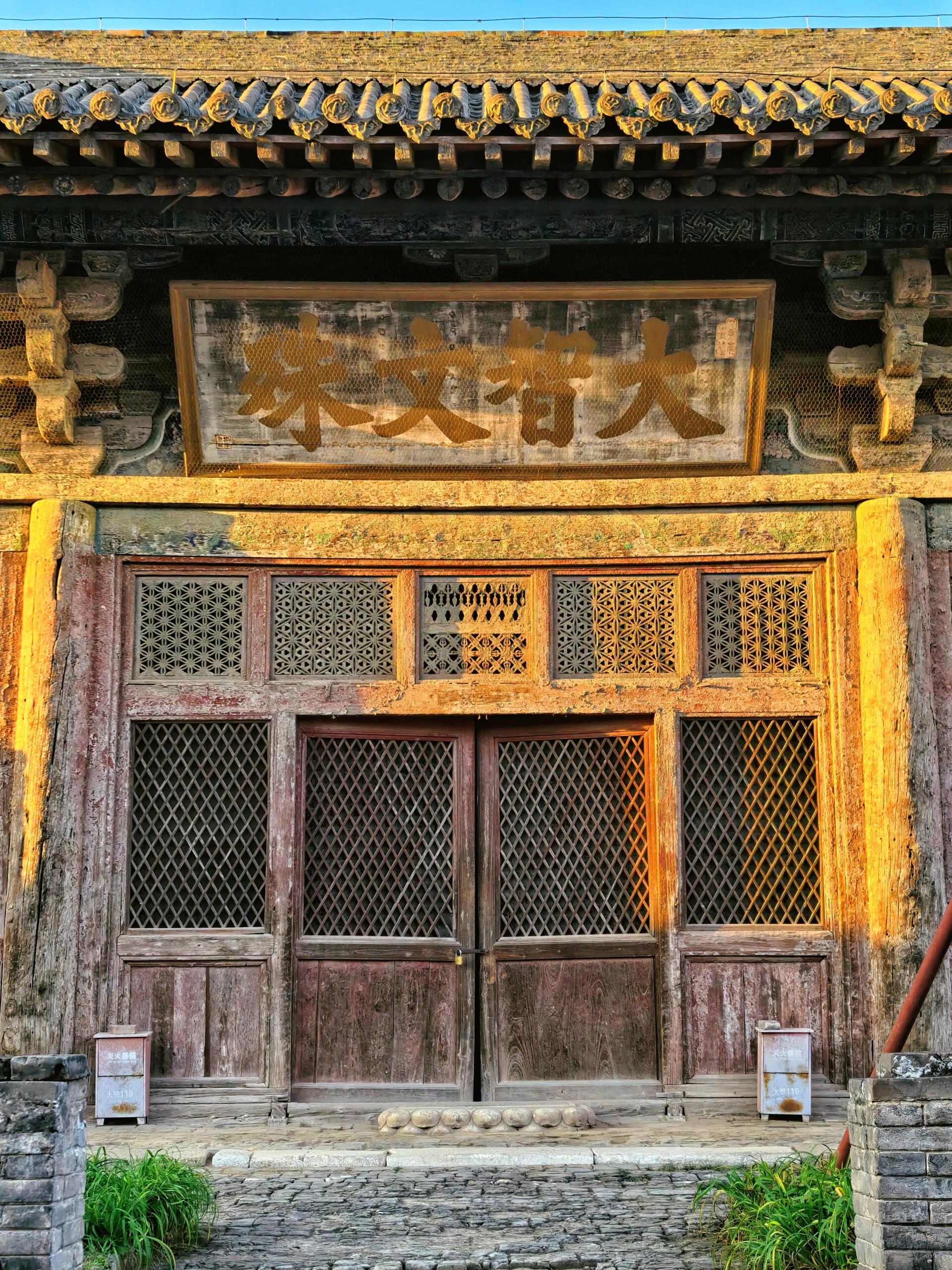 夕阳把最后一缕金光泼在文殊殿的鸱吻上时,我正扒着阁院寺那扇斑驳的朱漆门往里瞅。门轴吱呀一声转了半寸,露出的缝隙里,辽代的斗拱正把影子投在明代的地砖上,像一场跨越千年的叠影游戏。同行的老陈突然拽我胳膊:“别碰!这门轴说不定还是辽代的铁活。”