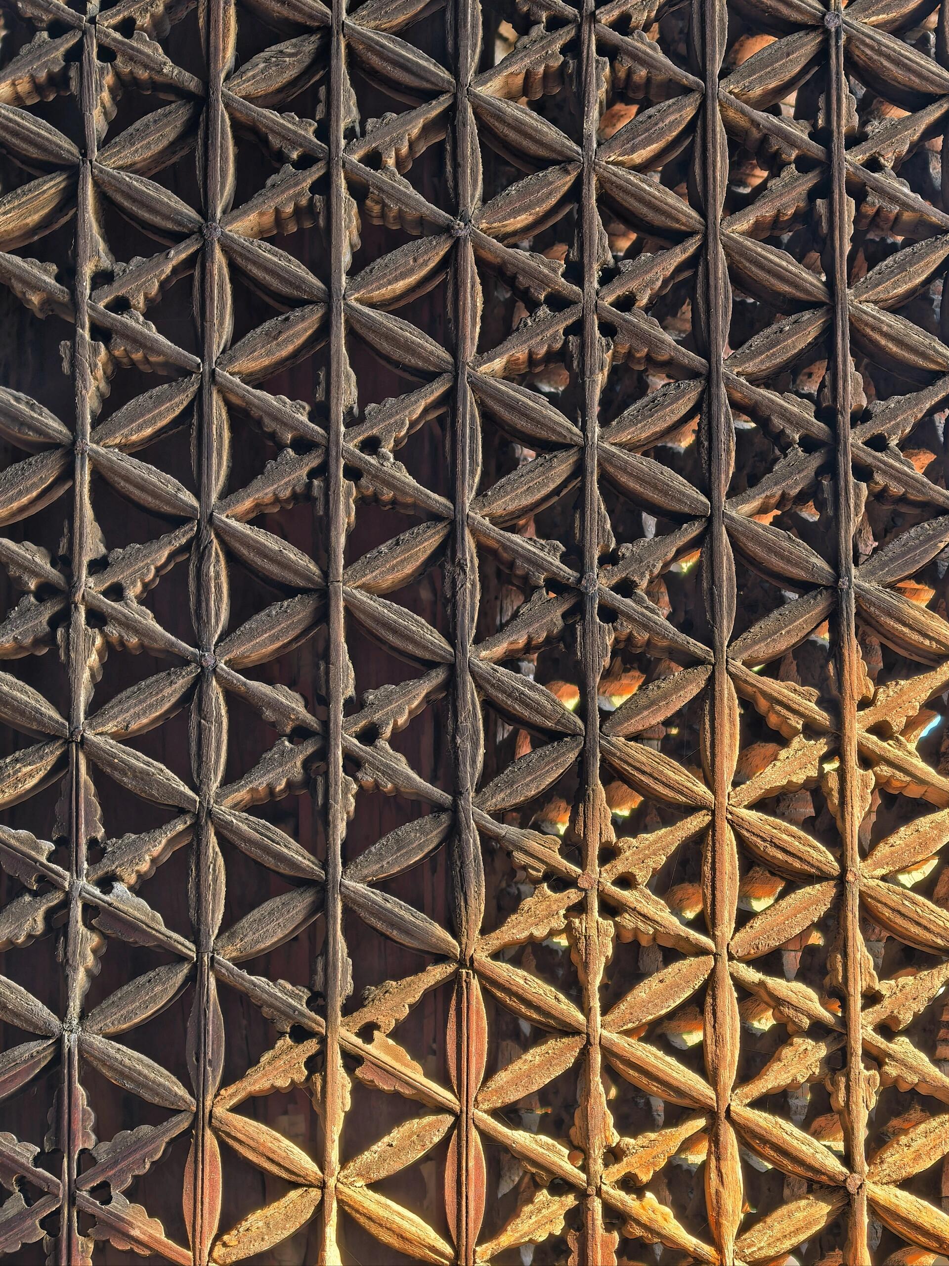 “快看窗棂!”老陈的声音有点发颤。顺着他指的方向望去,文殊殿正面那两扇窗简直让人倒吸冷气。不是因为雕花多繁复,恰恰是因为简单——菱形的格子里嵌着挑白毬文,线条刚硬得像被刀劈出来的,可凑近了看,每个转角处又都藏着极细微的弧度,像是给冰冷的木头注入了点筋骨。最绝的是光影,夕阳从格子里钻进来,在地上拼出一片晃动的光斑,那些菱形的影子随着太阳西沉慢慢移位,像有人在地上写着谁也看不懂的密码。