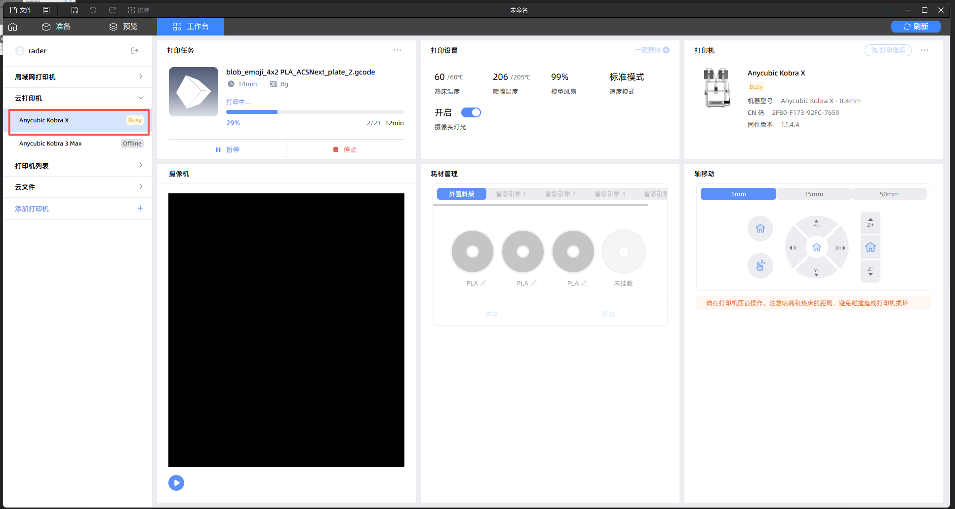 把纵维立方Kobra X连接到网络后,需要我们在PC端下载Anycubic Slicer Next (FDM),打开软件我们就可以在界面中找到刚刚联网的Kobra X。