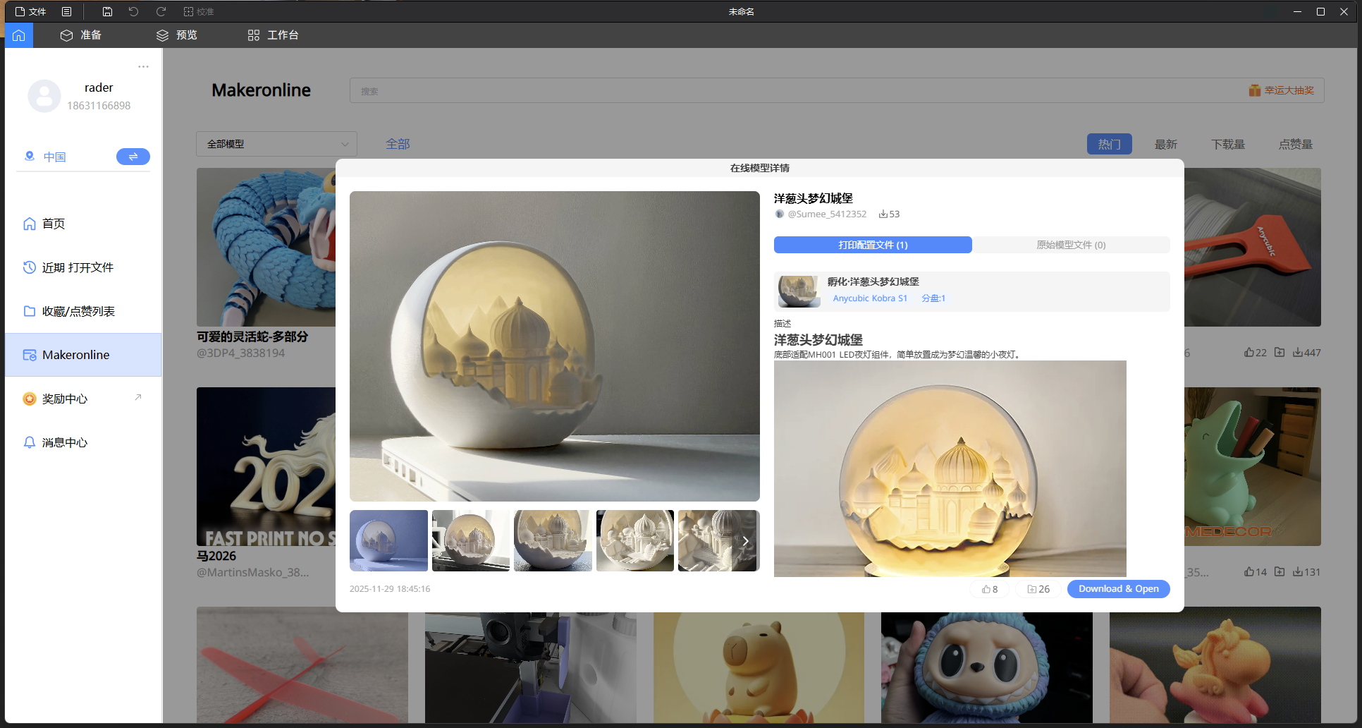 除了我们自己设计的3D作品外,我们能通过Makeronline下载自己喜欢的模型。