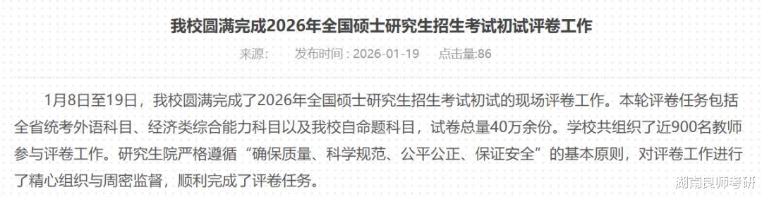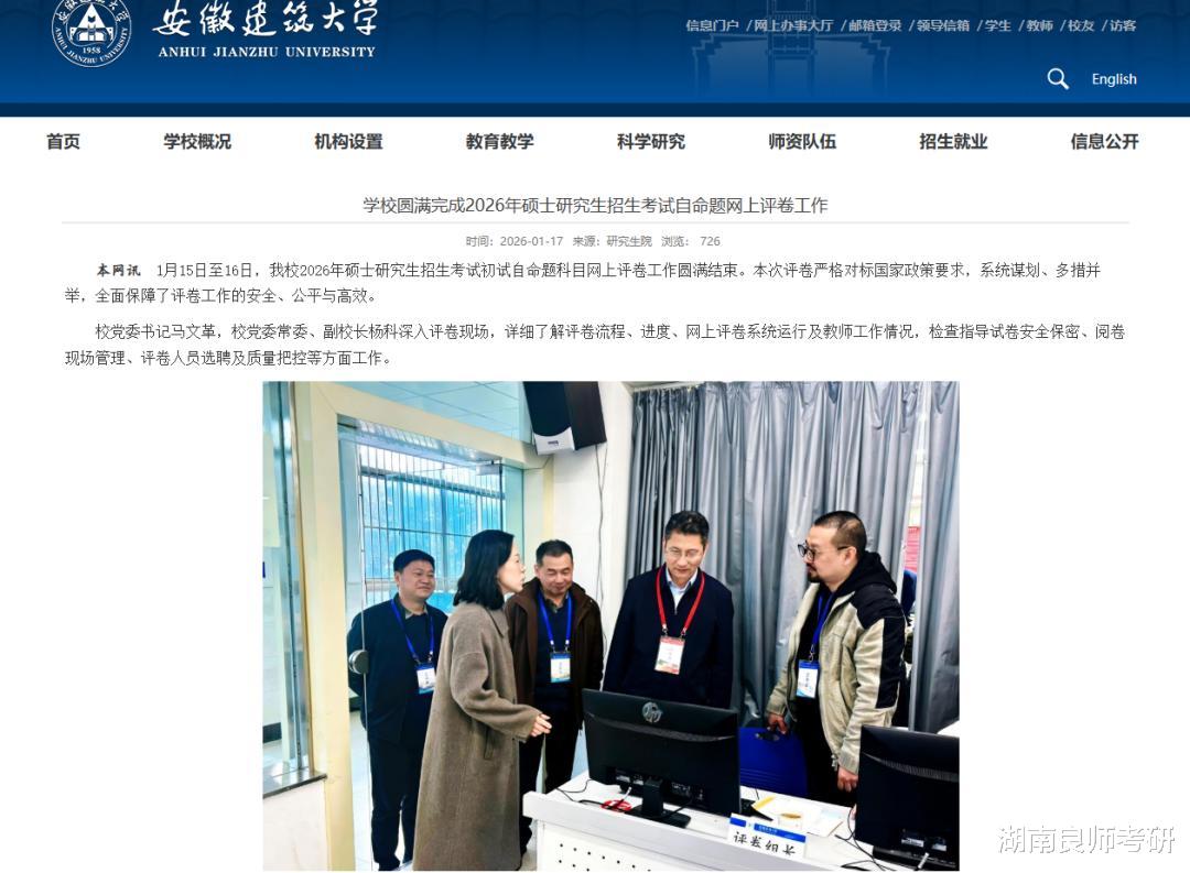 1月16日,安徽建筑大学研究生院发文:学校圆满完成2026年硕士研究生招生考试自命题网上评卷工作。