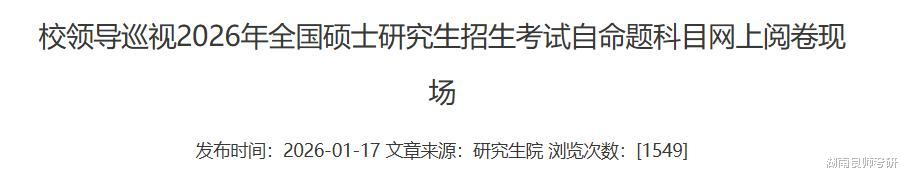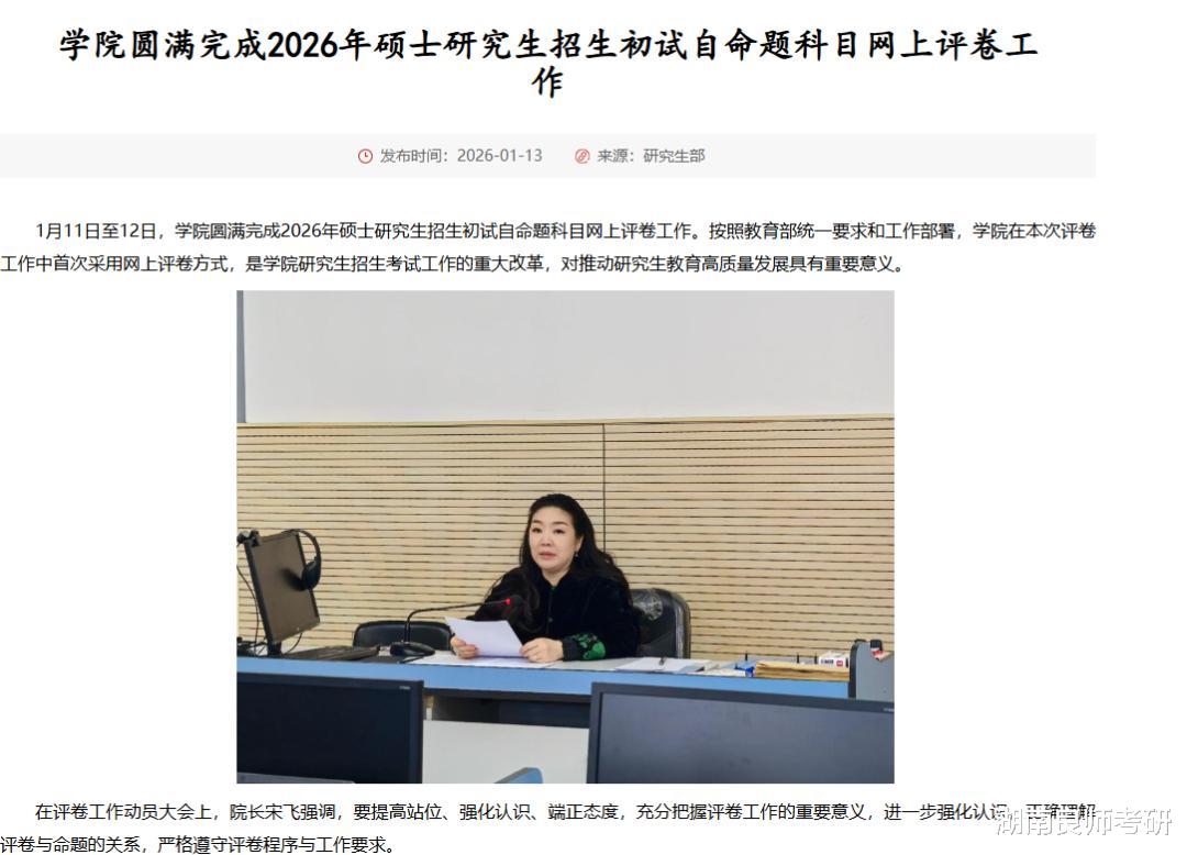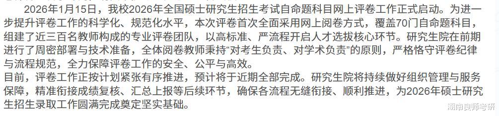 1月17日最新消息,2026年硕士研究生招生考试自命题科目网上阅卷,评卷工作正按计划紧张有序推进,预计将于近期全部完成。