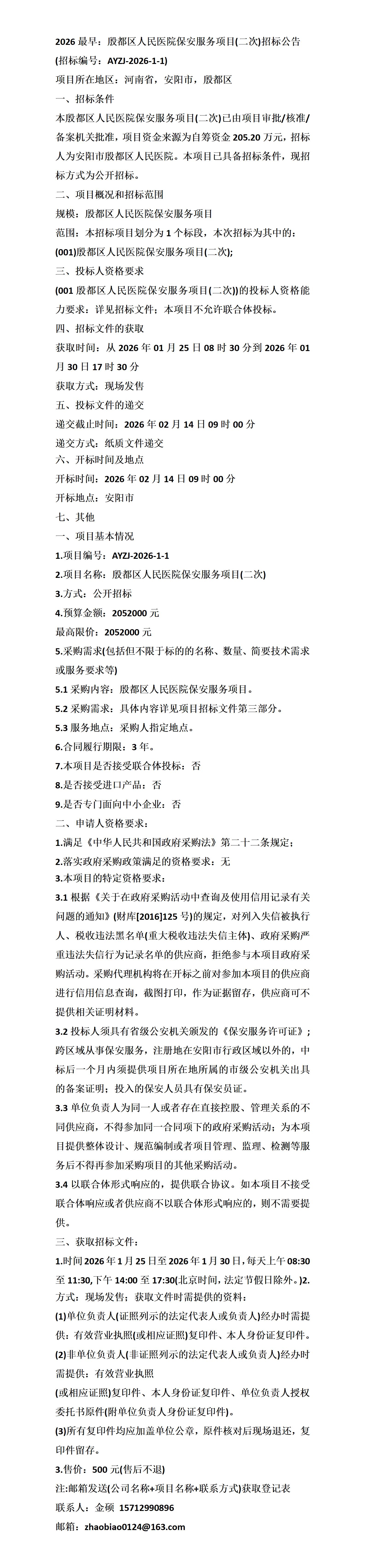 2026最早:殷都区人民医院保安服务项目(二次)招标公告