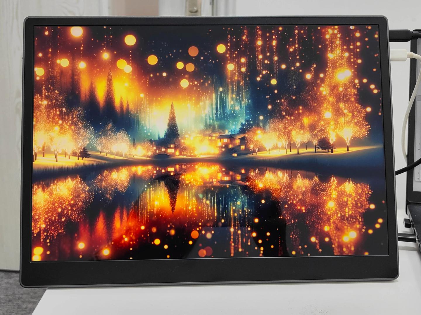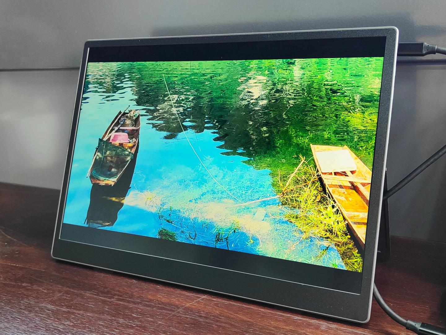 450 尼特的亮度完全能打,之前担心户外或者强光下看不清,结果实测完全多虑了。上次在咖啡馆办公,中午阳光直射桌面,屏幕也不反光、不泛白,文字和图片都看得明明白白,不用特意找阴凉地儿。100% 的 sRGB 色域也超靠谱,我偶尔会用它修图、做海报,色彩还原得特别准,不会出现色差翻车的情况。