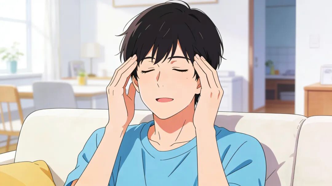 方法:大拇指放在太阳穴上,其余手指按在头皮上。先用大拇指指尖按揉太阳穴3次。