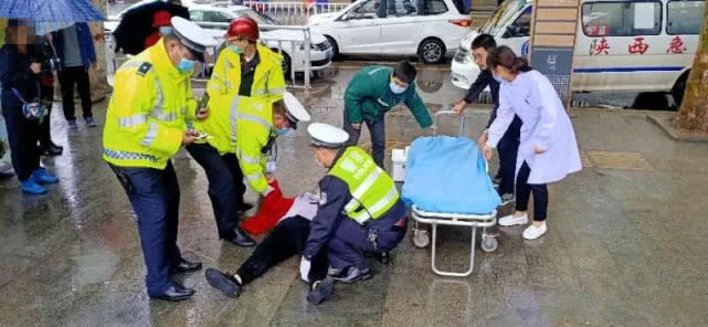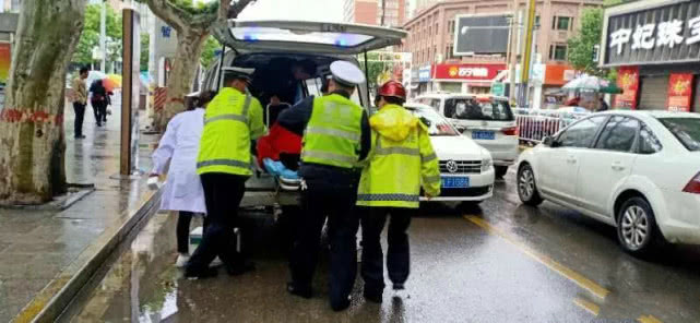 120急救车到达现场后,民警和医护人员及时将该女子抬上救护车送医救治。