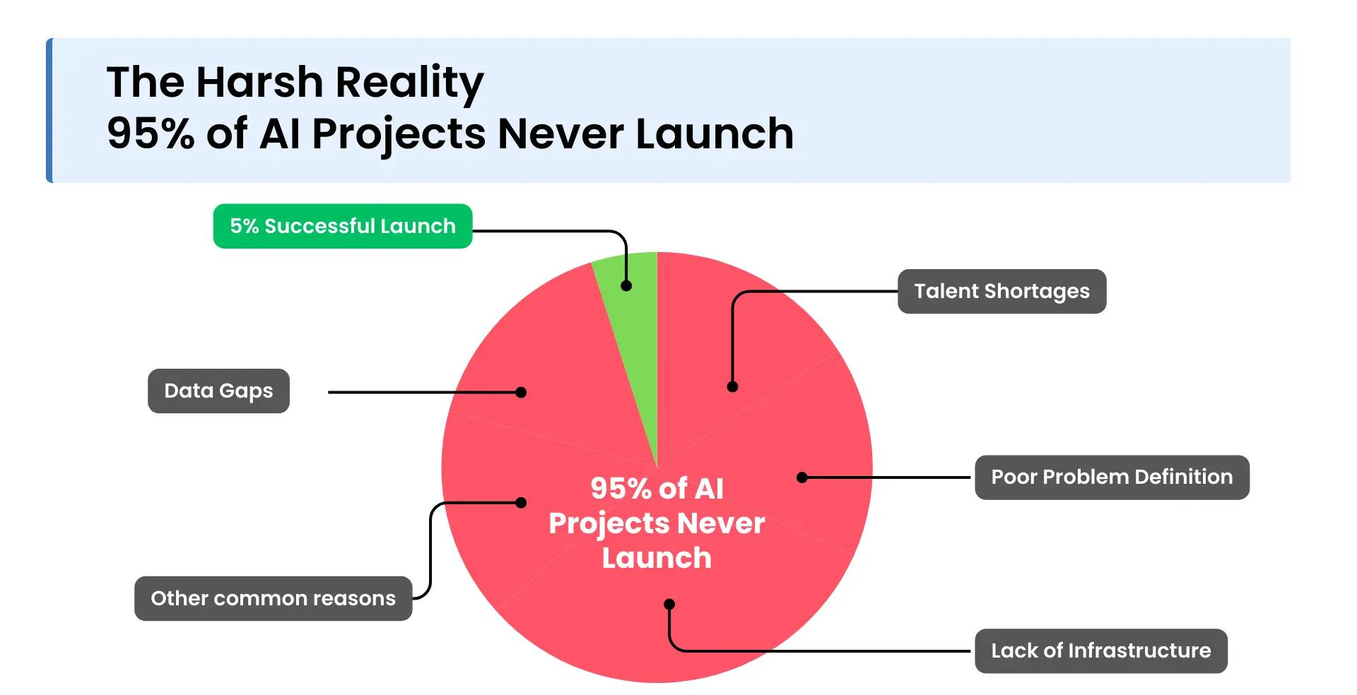 断裂的链条:企业价值的巨大鸿沟如果说战略失焦是病根,那么微软在企业级市场遭遇的“落地难”,则是最致命的并发症。这里存在一个被业界称为“生成式AI鸿沟”的现象:高达95%的企业AI试点项目,最终都未能转化为生产级的应用。