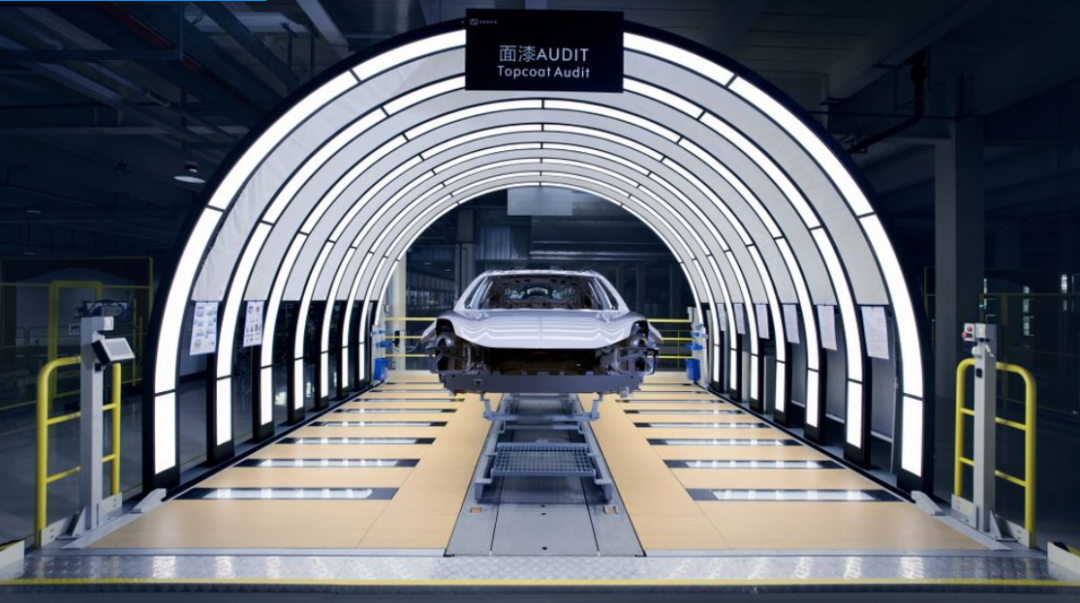 极氪的“未来工厂”是汽车“黑灯工厂”的样板。超过2000个智能机器人处理90%以上的体力工作。一个由人工智能驱动的质量检测系统,使用高清摄像机和机器学习,检查每个车架上的数万个焊点。