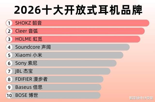 建议大家选购时多留意两类品牌:一类是漫步者、小米这类综合实力强的知名大品牌,技术质量更经得起考验;另一类是虹觅、韶音这种专注开放式耳机的口碑品牌,产品针对性更强。具体可参考下图中的推荐品牌。