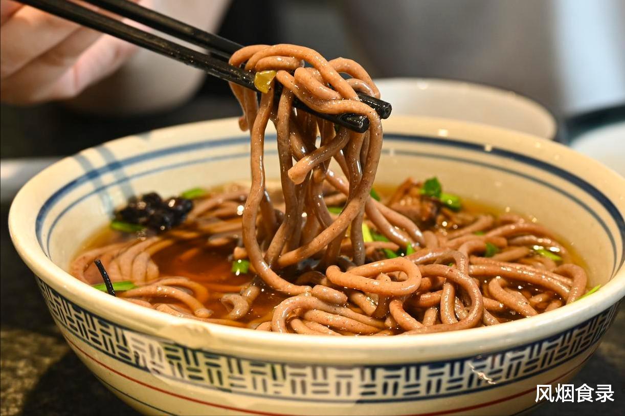 这面筋道得能弹牙,荞麦面混小麦面,压出来的条儿粗如筷子,