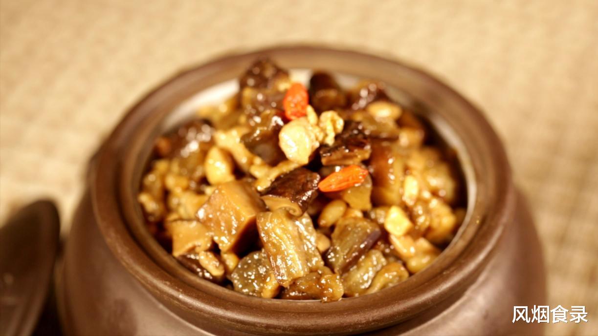 茄丁裹鸡油炸,混着菌菇、笋丁、干果,拿鸡汤煨干,糟油一拌,封在瓷罐里,吃时拌鸡爪。
