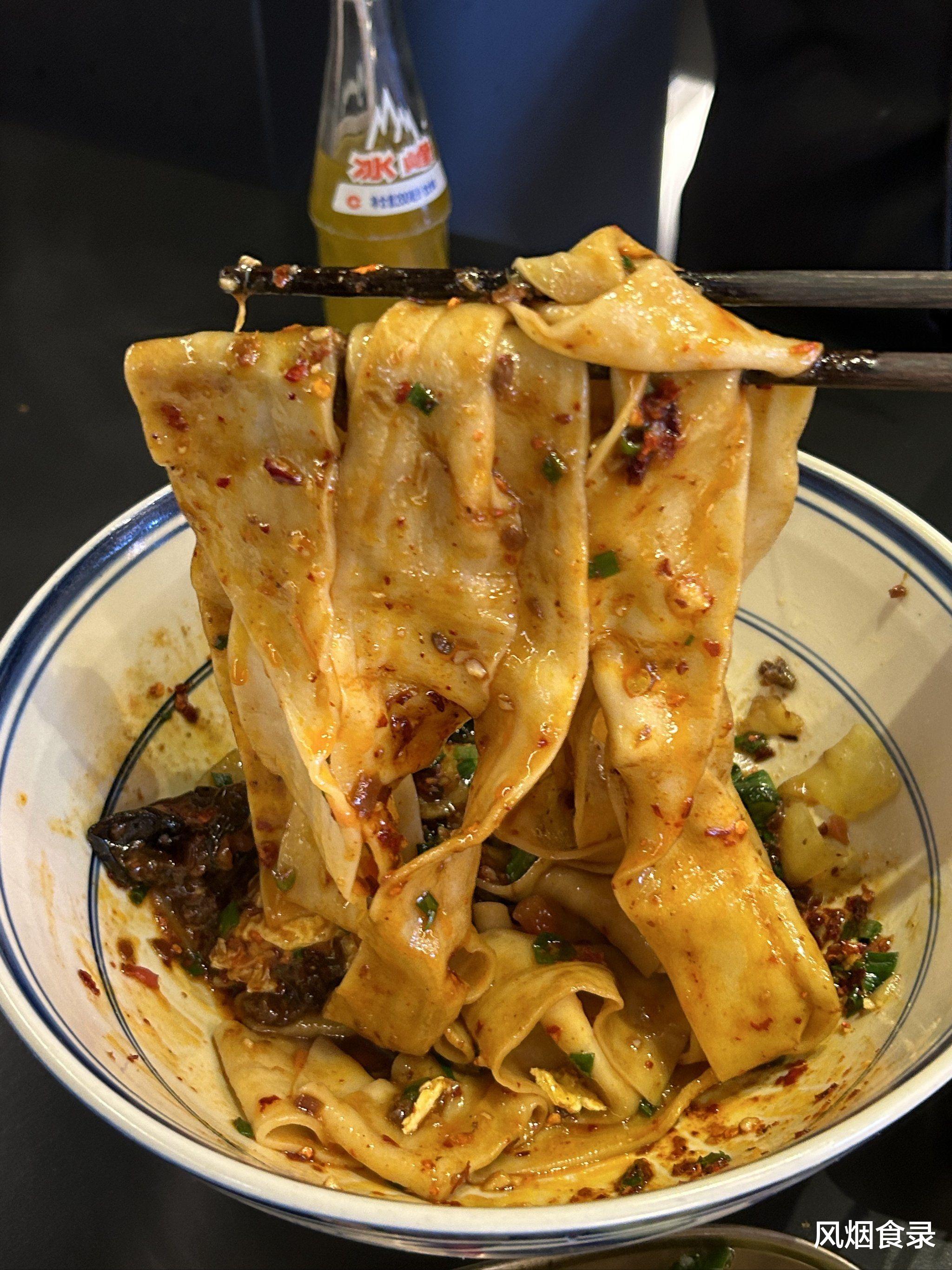 面宽得像裤带,厚实筋道,嚼起来弹牙。