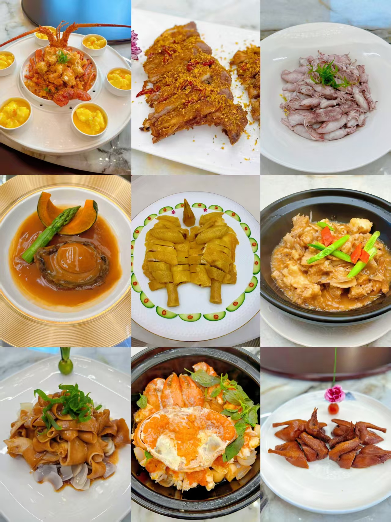 潮汕菜的精髓,在于看不见的“工夫”。峪园深谙此道,并将其转化为商务宴请的独特语言。一席宴,从潮汕老香黄迎宾茶开始,便奠定了温润养胃的基调;一道慢火煲足六小时的橄榄螺头汤,清润回甘,不仅是驱寒佳品,更隐喻着合作需要文火慢炖的耐心。招牌潮式卤水拼盘,卤香醇厚层次分明,仿佛历经时间沉淀的信任关系;而现场烹制的豆酱焗膏蟹,香气随锅气升腾,则宛如创意在碰撞中迸发的火热瞬间。