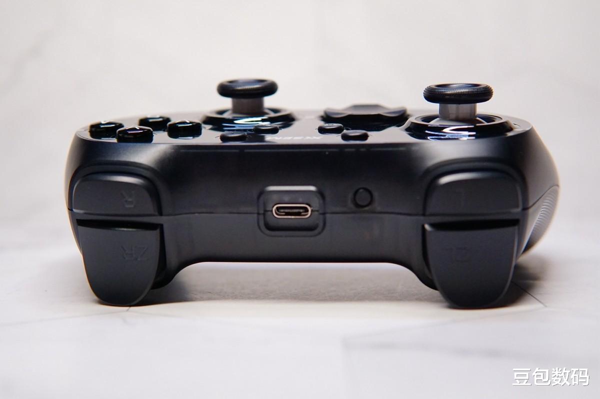 续航方面,充满电之后续航可以达到12小时,即使是想重度使用畅玩游戏也完全没问题,按照我平时的玩法可以做到一周充一次电,这个续航表现我觉得还是非常出色的,平时完全不用给手柄频繁充电。充电接口是Type- C口,用手机的充电线就可以给手柄充电非常方便。