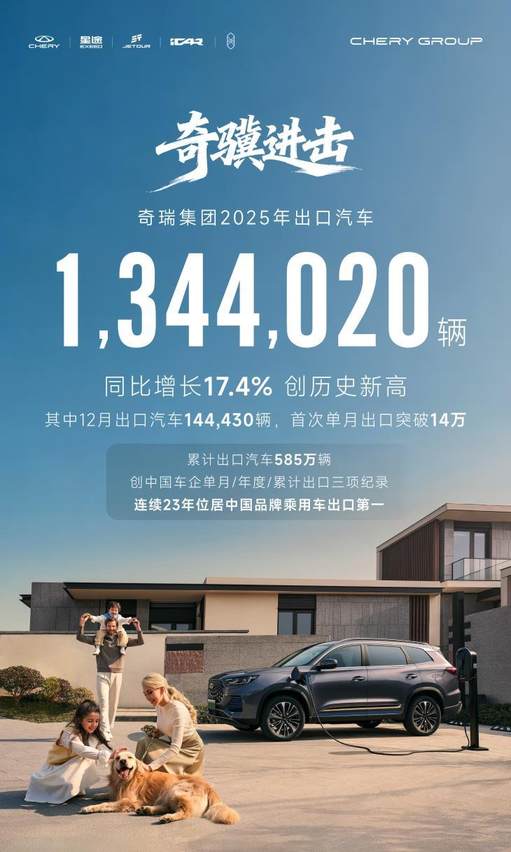 奇瑞集团 2025 年销量 280.64 万辆,同比增长 7.8%,看似中规中矩,实则暗藏玄机:出口 134.4 万辆,占比接近 48%,已然成为 “跨国车企”。国内市场,一台瑞虎 8 仅赚数百元,但在俄罗斯、中东、南美等地,其售价可达国内两倍以上,海外市场的高额利润,成为国内价格战的 “输血库”。