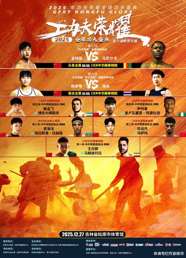 本次赛事由吉林省功夫荣耀体育文化有限公司创始人高利成先生精心策划,并在松原市文化广播电视和旅游局的大力支持下,携手吉林省武术散打队共同打造。赛事将汇聚来自伊朗、泰国、尼日利亚、阿塞拜疆、乌兹别克斯坦、摩洛哥、喀麦隆等七大洲的顶尖踢拳高手。他们将与中国功夫健儿在松原体育馆展开巅峰对决。