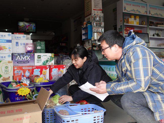 图为志愿者帮助零售户整理农产品、更新库存 李想/图