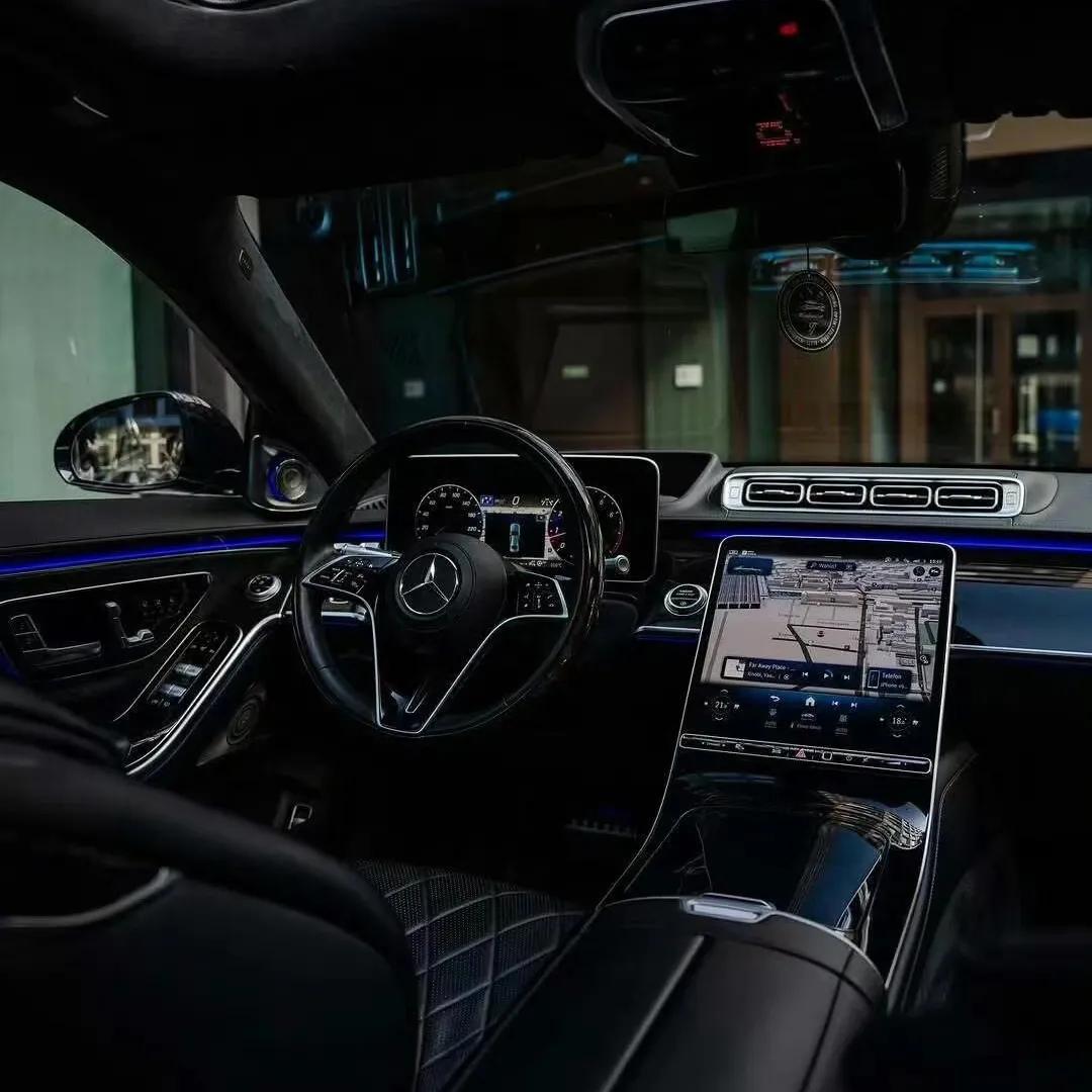 全系顶配的S500则是奔驰S级的技术天花板,也几乎看不到价格妥协的痕迹,依旧是顶级豪车的姿态。它搭载3.0T直列六缸发动机(代号256830),最大功率448匹马力,峰值扭矩550牛·米,匹配9AT与全时四驱,零百加速仅4.9秒。安全配置上配备11个安全气囊,包含全球首创的后排正向安全气囊和中央安全气囊;灯光系统更是堪称黑科技,数字流星雨大灯内置130万个微透镜,可在路面投影导航箭头、警示符号等图案,夜间照明范围达650米,这一技术也成为不少国产高端新能源车型效仿的对象。