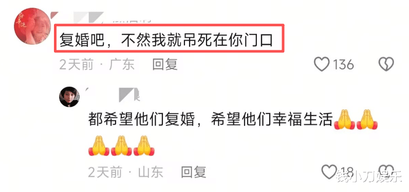 她的社交平台评论区和直播间评论区都有人拿复婚来刷屏,还有网友起哄说要给他们复婚随礼,随礼金额也一路从几百块涨到了100万。