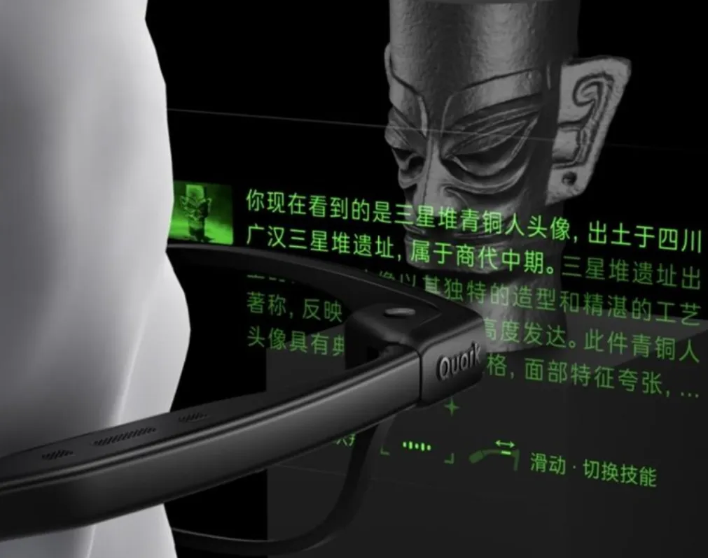 第二天,在当地的博物馆,夸克眼镜根据摄像头采集到的信息,给出展品的介绍资料。