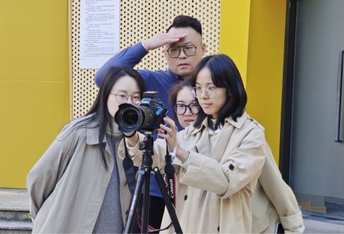 图为在户外开展融媒体培训