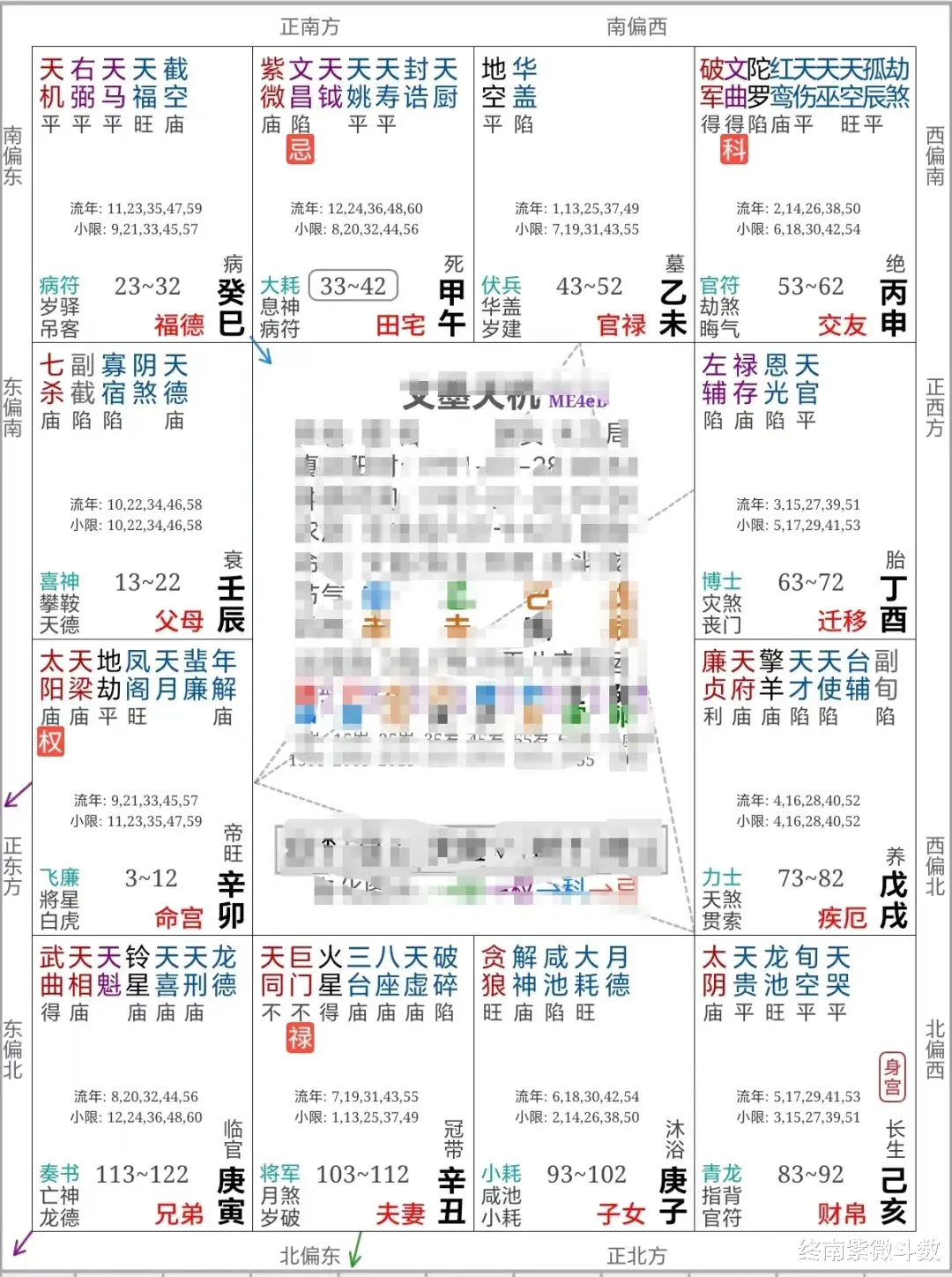 生年忌在田宅宫,代表此生家运的动荡不安,需要过了第四个大运方才转好。同时,也意味着其在处理家庭关系,与家人相处模式上的失衡。