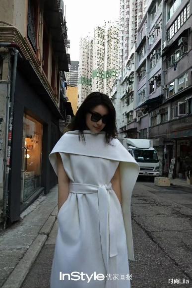 最后一套则是都市味十足的白色披肩裙,一字领披肩的风格商务感满满,裙子直裁式的套裙设计,穿出都市女性的精简利落范,腰间点缀上配套的宽腰带,呈现出不一样的整洁干净风,也让我看到了郭晶晶不同的时尚魅力。