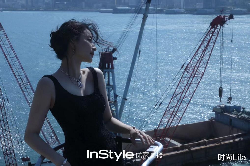 长相上,郭晶晶或许并不惊艳出彩,但她舒展的女性气息却和柔和迷人,比起明星们的个性杂志风,松弛又洋洒的杂志风格似乎更能诠释郭晶晶的成熟美,一袭低胸吊带黑裙的打扮低调又含蓄,盘起的秀发随风飞扬,勾芡着好看的90°侧脸,不管是背景还是妆造风格,都非常映衬郭晶晶的美。