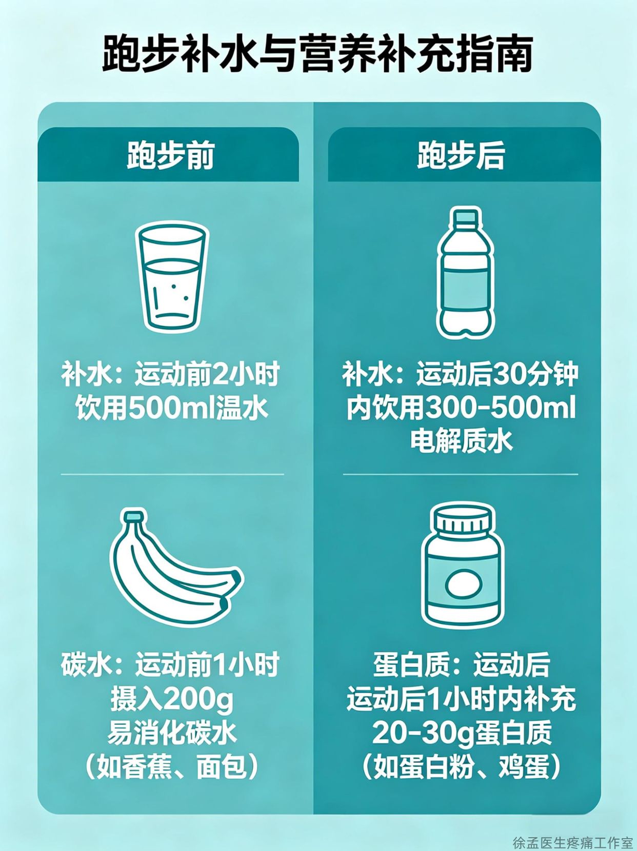跑步前补水:跑步前 30 分钟喝 200 - 300 毫升的水,让身体有足够的水分储备。