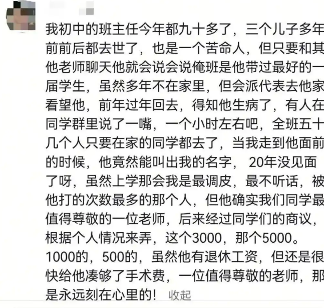 “我小学班主任今年80多了,去年同学聚会,