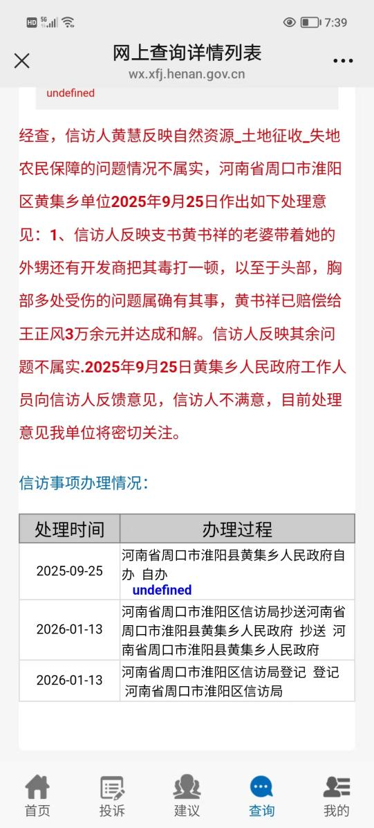 此后,王正风多次向乡司法所、派出所及上级部门反映情况。2025年6月,他再次递交书面诉求,派出所负责人承诺处理,但截至8月仍未给出明确答复。无奈之下,夫妇二人再度向淮阳区信访局投诉,案件再次被转回黄集乡政府。