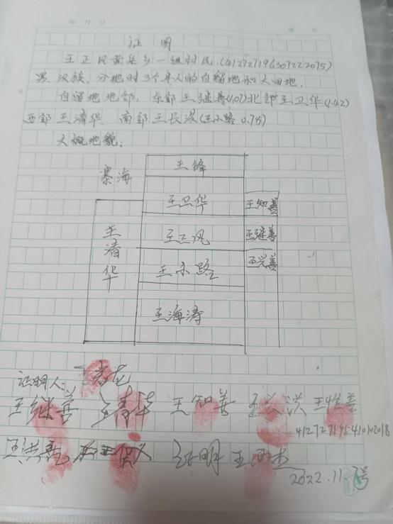为佐证权益,王正风提交了包括分地原始记录、队长签字确认的证言、多位地邻联名证明及父亲生前手写地亩账在内的多项证据。然而,令人困惑的是,在开发商声称“早已补偿到位”后,原本出具证明的队长王启龙竟改口否认土地归属。