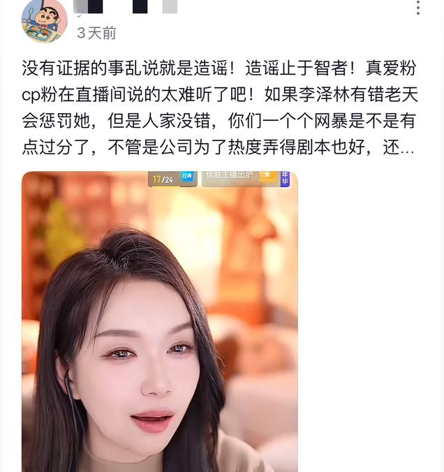 关于两人离婚的原因,曾有网友透露与耀杨旗下的主播李泽林有很大的关系,且两人经常同框现身,所以“小三”这一头衔便被冠在了她的头上,实际情况真的是这样吗?