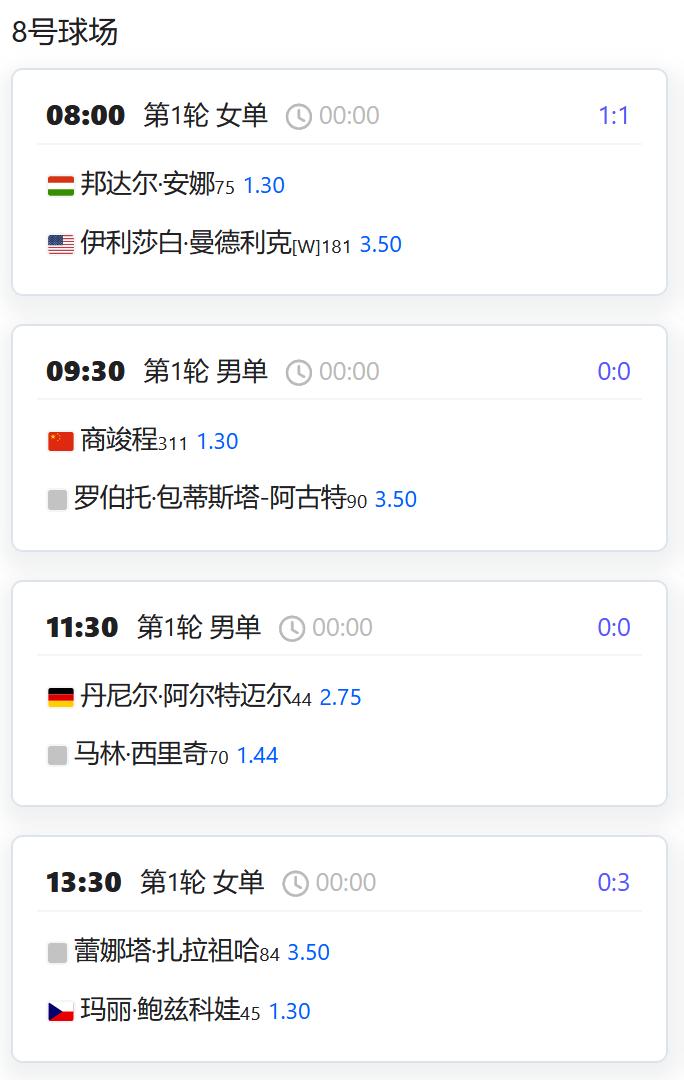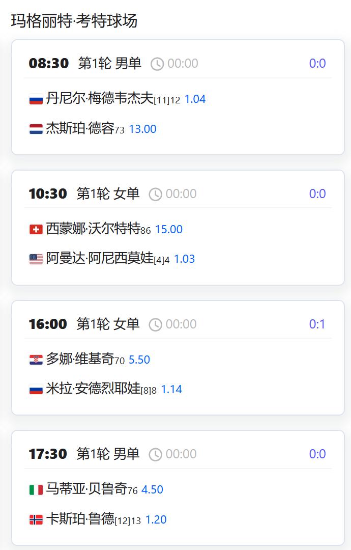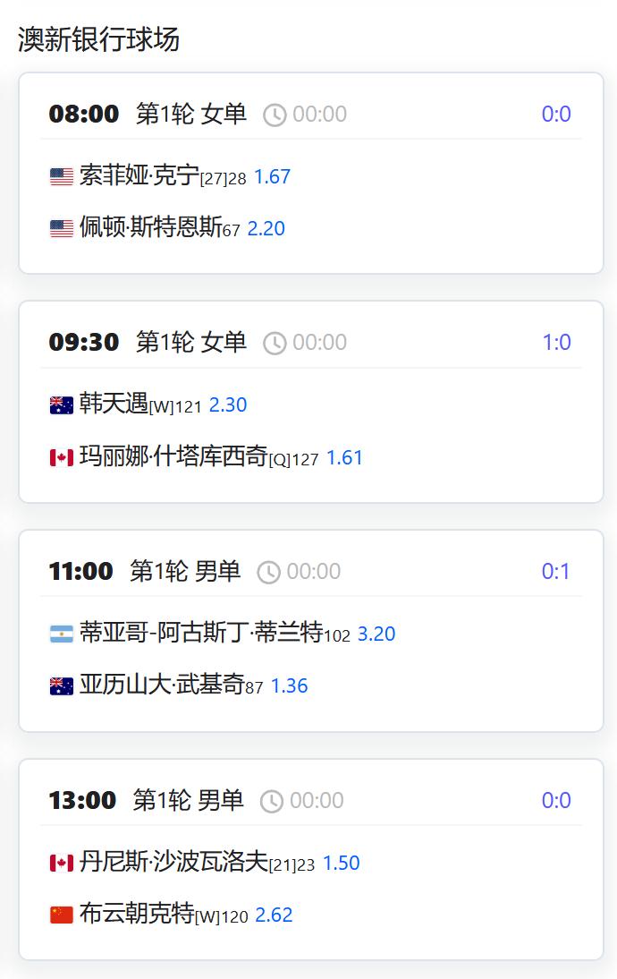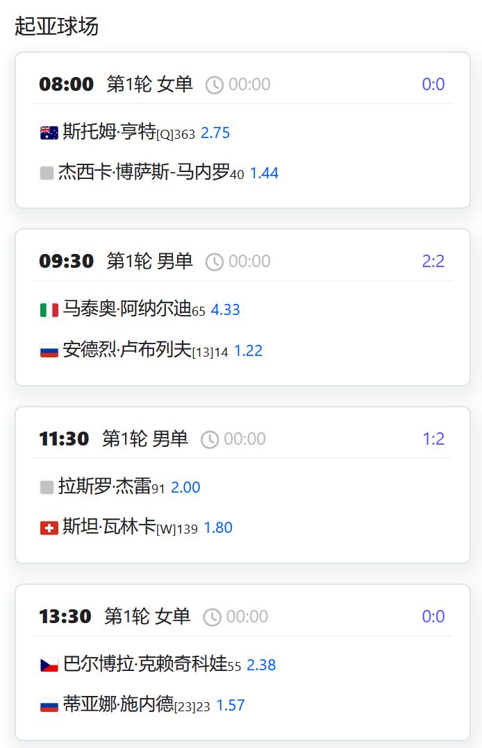 另外,在起亚球场第三场,宣布在本赛季退役的瑞士名将瓦林卡将对阵塞尔维亚的雷杰。