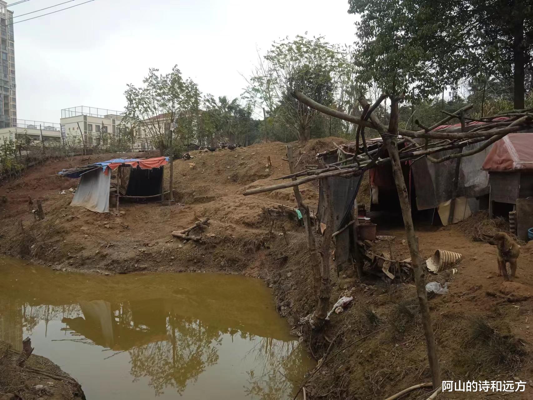 河边上终于看到有绿色的菜地了,说明已远离闹市区。